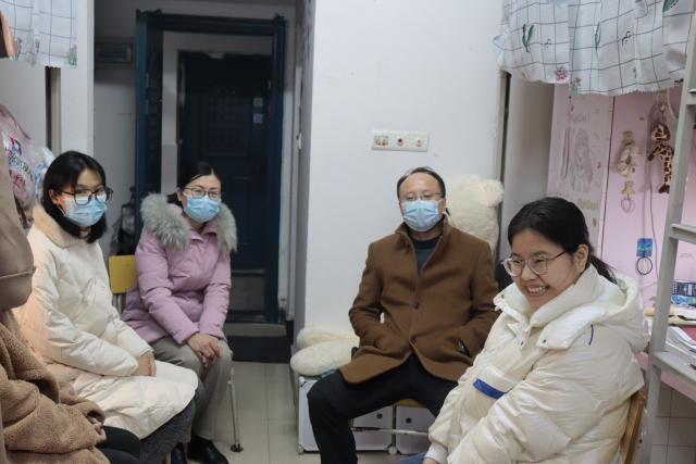 走访过程中,徐董事长与同学们进行了亲切的交流,详细地询问了平时学业状况、期末备考情况以及毕业打算。同时,他还关心同学们是否存在因为疫情原因无法回家情况,是否都接种新冠疫苗,并叮嘱同学们返乡途中注意安全等等。此外,徐董事长分享了一些考研经验,勉励同学们要朝着自己的目标踔厉奋发,笃行不怠,为老员工活增添亮丽底色。