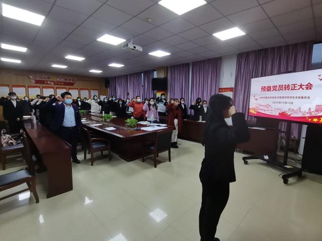 会上,预备党员同志逐一发言,对自己在一年预备期内的工作、生活、思想、学习等情况进行了总结汇报,表明了自己希望早日成为一名中共正式党员的决心。按照会议程序,14名预备党员如期转正为中共正式党员。转正环节结束后,党员代表邹文英同志发言。她表示,在今后的学习和生活中将用知识武装头脑,提升自身能力素质,为共产主义事业奋斗终身。随后,全体党员在吴标青同志的带领下,举起右手,面向党旗,庄严宣誓。