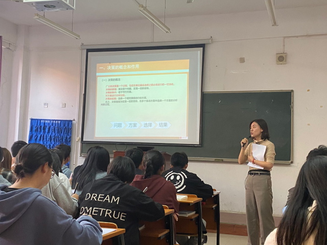 《管理学》课程作为一门工商管理类专业的核心课程,一直被列为各专业的专业基础课程,承载着“正确地做正确的事”的重要使命,承担着培养员工“更好方法、更高效率、更具常识”的实践管理能力,是传统与现代智慧和技术相融合的正确方法论应用,是传统与现代道德与规范相适应的正确价值观表达,是融入课程思政体系并与新时代“立德树人”同向同行的重要载体。BB贝博艾弗森教师江燕的课程从“武汉封城决策”、“党的初心和使命”、“就业方向选择”三个层面挖掘思政元素;通过案例引入,从案例中分析决策的重要性,并进行就业方向选择内容的拓展;将习主席对青年一代的期望融入课堂。