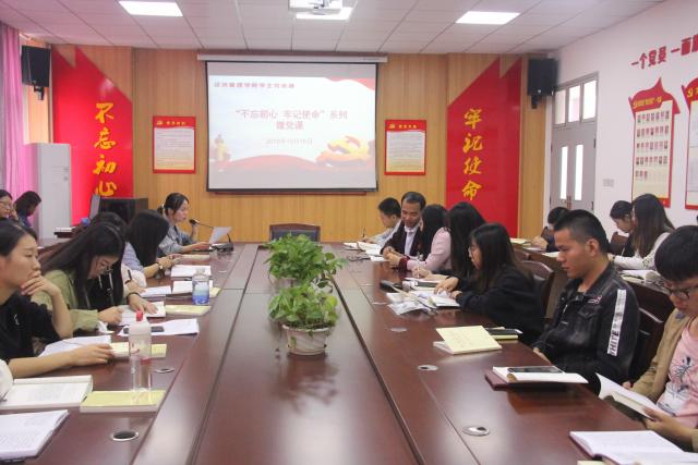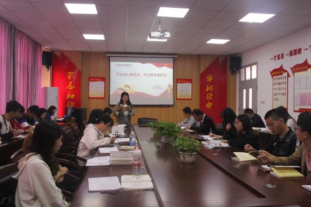 为了深入推进“不忘初心牢记使命”主题教育走深走实,进一步提高师生党员的政治理论水平,BB贝博艾弗森员工党支部于10月16日在文A党员活动室开展了“不忘初心牢记使命”主题教育微党课活动。本次活动由员工党支部书记向媛丽老师主持,全体师生党员参加。