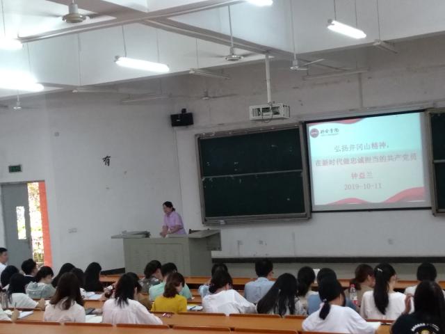 党课围绕“习近平总书记有关共产党人初心和使命的重要讲话”、“井冈山精神的内涵及其时代意义”、“共产党的忠诚”、“共产党的担当”四个方面进行宣讲。钟益兰副书记强调“对党具有深厚感情才能对党绝对忠诚”,党员干部要工作有感情、有热情、有激情。