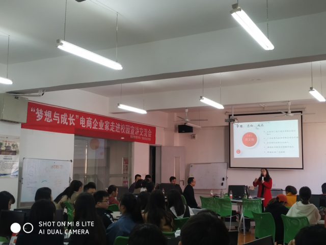 2019年3月12日下午,由经管公司和双创公司共同举办的电商企业家走进校园宣讲会在VBSE教室开展。此次会议主题是“梦想与成长”,邀请了江西宇喆电子商务有限公司创始人黄文娟,江西海淘电子商务有限公司董事长张小良,江西助力科技发展有限公司董事长冯爱民,抖商集团江西运营中心负责人周会仁等企业家代表。目的是来让在校电子商务专业生了解的电子商务发展趋势,跨境电商、抖音等最新的一些电商技术的应用。17电商班员工参加本次宣讲会。
