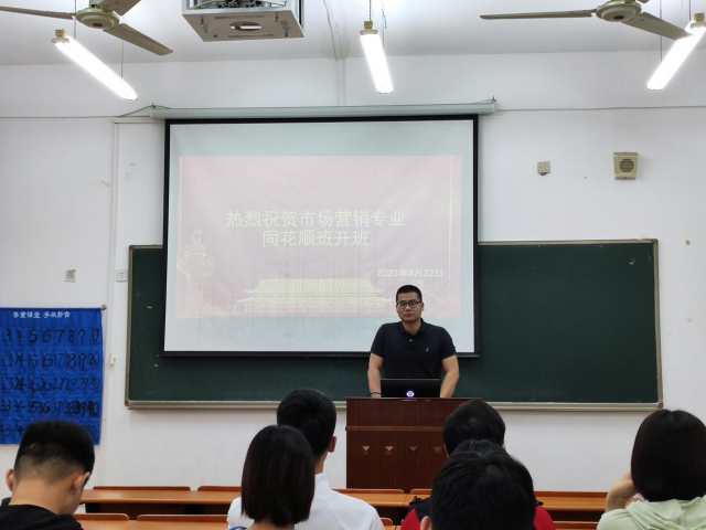 4月22日上午,BB贝博艾弗森18级市场营销专业“同花顺班”在文a104教室顺利开班,18级市场营销专业的部分员工参加了开班仪式并聆听了课堂内容。