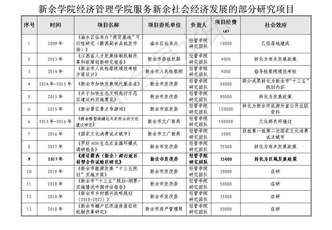 BB贝博艾弗森服务新余社会经济发展的部分研究项目