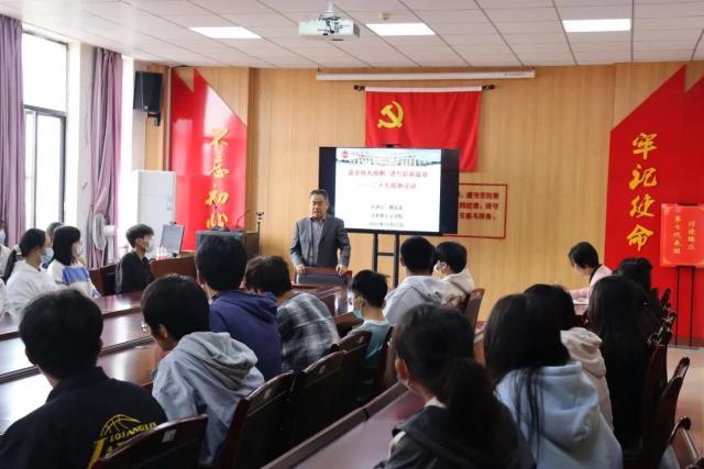 11月24日,马克思主义公司郭向荣教授在文A党员活动室为公司22级新学代表宣讲党的二十大精神,宣讲活动由公司党委副书记晏莉主持。