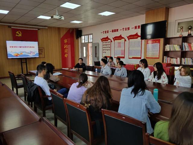10月12日上午8:30分,经管公司在文A会议室召开了2021届毕业班员工座谈会。袁甜副经理出席会议,电子商务、市场营销、财务管理三个专业共20余名员工代表参加此次会议。会议由员工管理与就业科副科长李丹老师主持。